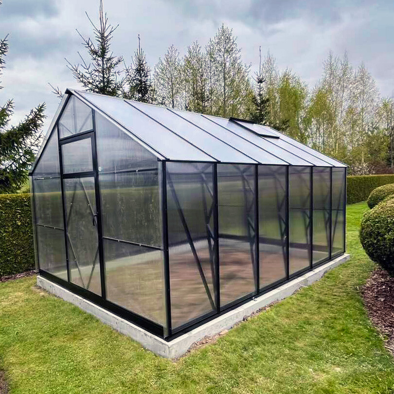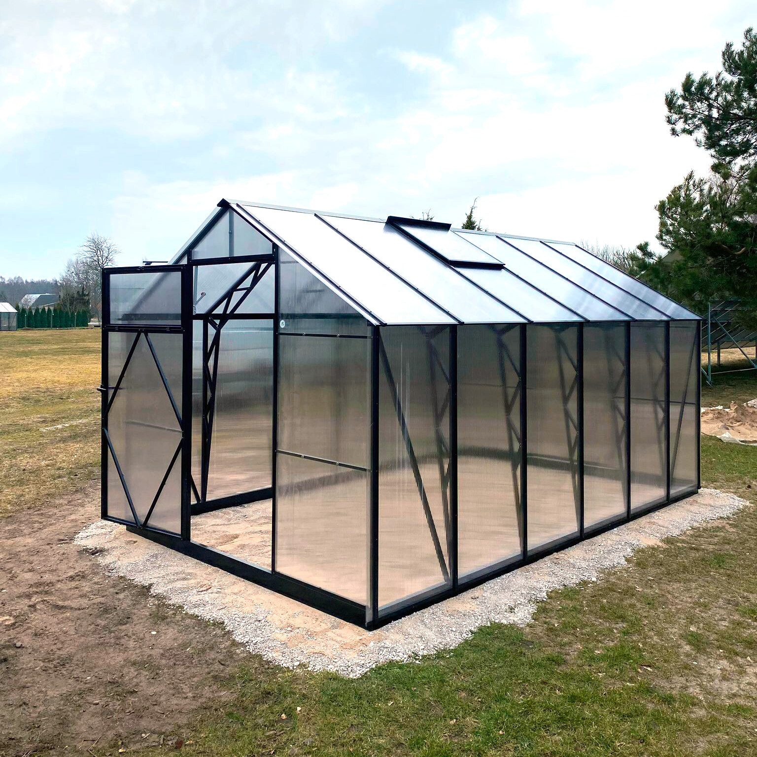 Базовый размер теплицы: 4м x 2.7м x 2.7м (Ш х Д х В). Длина — на выбор, с шагом 140 см.