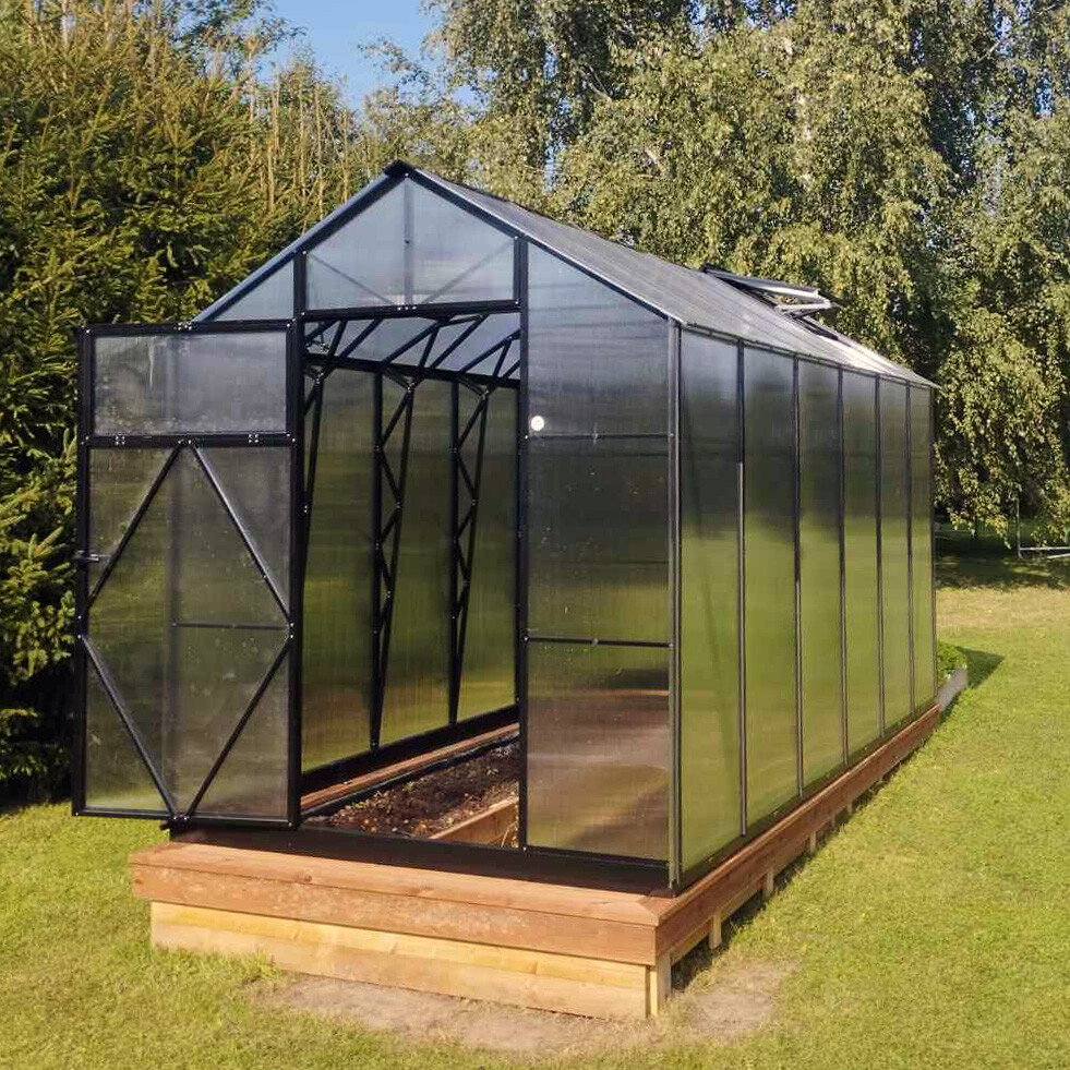 Базовый размер теплицы: 2м x 2.7м x 2.3м (Ш х Д х В). Длина — на выбор, с шагом 140 см.